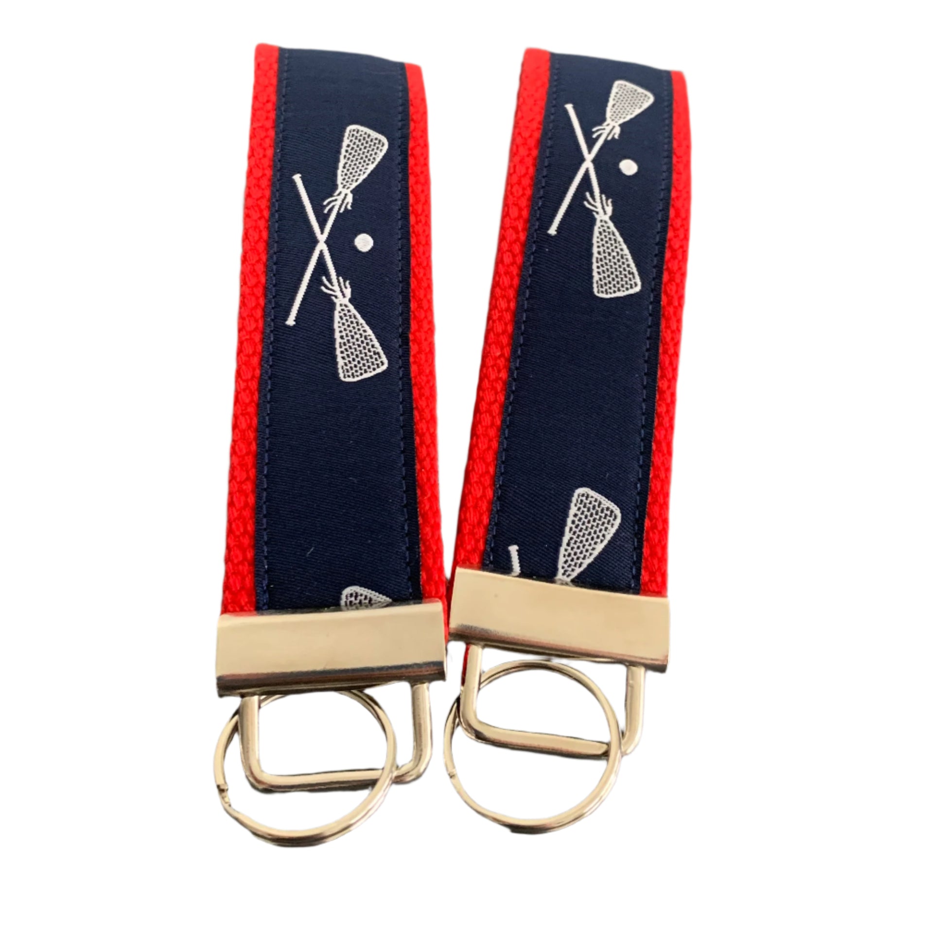 Show your love for lacrosse! This key fob is made of high quality jacquard ribbon and heavy duty cotton webbing. Perfect for slipping on your wrist when you do not have a place for your keys. This key chain also makes keys easy to find in your bag.